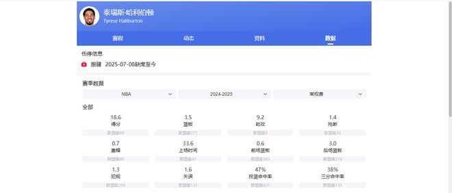 身高1米96,司职后卫,效力于步行者。他是在NBA24-25赛季总决赛第七场中受的伤,具体伤情为跟腱撕裂,预计恢复期一年,NBA25-26赛季也基本赛季报销。