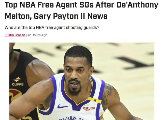 勇士队一口气连签6人!其中包括小佩顿与梅尔顿两大分卫,那么在两人签约之后,自由市场中还有哪些分卫大鱼可抢?美媒《SI》晒出4人名单。