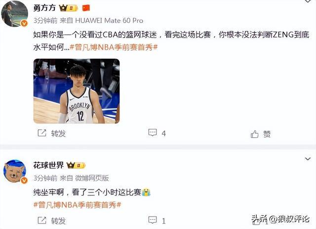 北京记者勇方方发文点评:如果你是一个没看过CBA的篮网球迷,看完这场比赛,你根本没法判断ZENG到底水平如何。