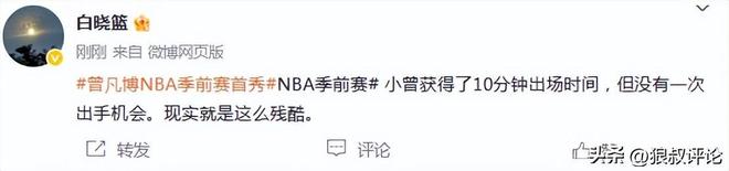 曾凡博NBA首秀0分1抢断引热议媒体人吐槽10分钟0出手尽显“残酷”