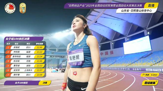 9月28日,全国田径冠军赛女子100米栏:吴艳妮12秒90创造赛季最佳,成功夺冠。