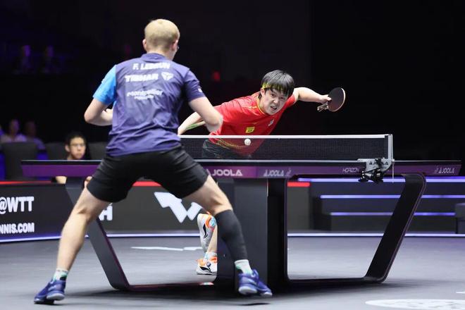 而林诗栋与法国小勒布伦的比赛进程一波三折。首局比赛,林诗栋似乎未能完全进入状态,以5-11先失一局。随后他通过调整,以11-7、11-6连扳两局,将大比分反超。然而,从第四局开始,场上风向再度转变,小勒布伦在关键分处理上更为果断,以11-9取胜扳平大比分。此后比赛完全进入法国选手的节奏,林诗栋在第五和第六局均以6-11告负,最终大比分2-4输掉比赛。