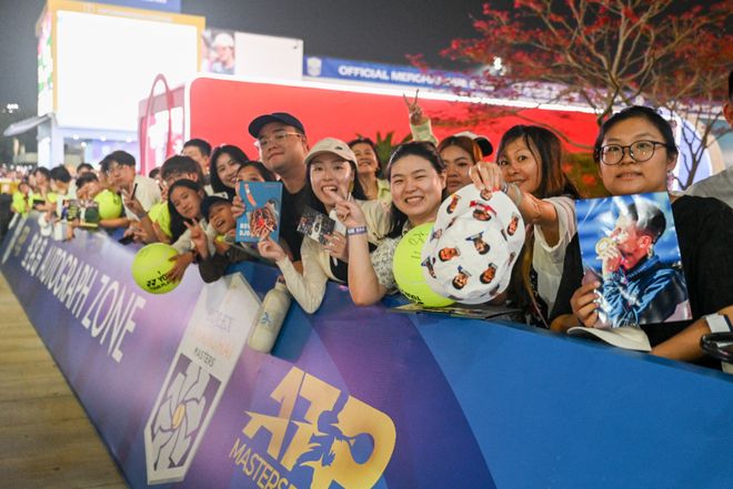 2025年10月7日,上海,久事体育场馆旗忠网球中心,比赛结束后球员给球迷签名。澎湃新闻记者 朱伟辉 图