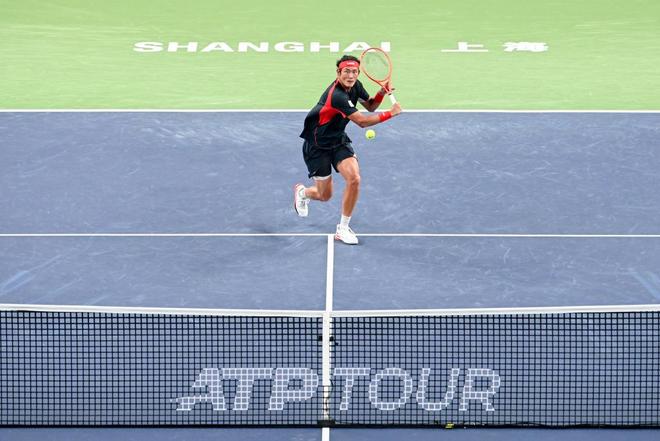 2025年10月1日,上海,久事体育场馆旗忠网球中心,张之臻在比赛中击球。澎湃新闻记者 朱伟辉 图