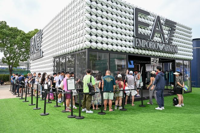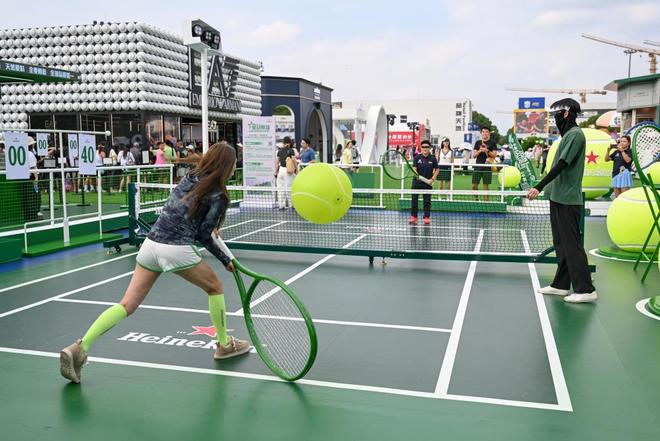 比赛精彩纷呈,场外也不遑多让,赛场外的互动体验区成为球迷的欢乐海洋,各品牌搭建的展台各具特色,将网球元素与趣味游戏巧妙融合。文创消费区同样人气爆棚,三家官方纪念品商店种类繁多,钥匙扣、毛绒玩偶、丝巾围裙等商品涵盖百元左右的亲民价位,新增的儿童玩具与户外用具更贴合家庭需求。
