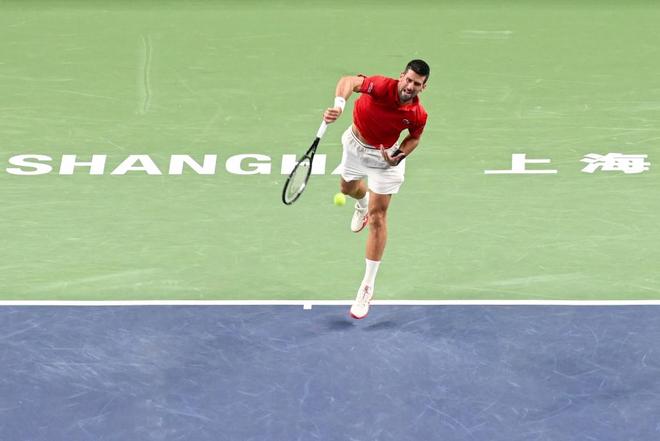 2025年10月7日,上海,久事体育场馆旗忠网球中心,德约科维奇在比赛中击球。澎湃新闻记者 朱伟辉 图