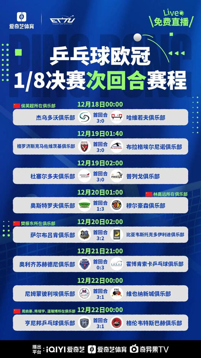 2025/26赛季欧洲乒乓球联盟(ETTU)男子欧冠联赛展开16强赛次回合的争夺。首回合比赛已屡现逆转、爆冷与个人高光时刻,各支俱乐部将向八强席位发起最后的冲击。25/26赛季乒乓球欧冠,爱奇艺体育免费直播焦点对决。