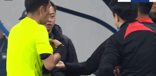 从慢镜头来看,费利佩头球之后,球击中了周缘德手臂。最终,视频助理裁判确认进球无效,主裁判艾堃向周缘德出示黄牌。蓉城教练组在场边激烈抗议,艾堃跑到边线向助教出示黄牌,并且向徐正源解释,但蓉城主帅情绪激动。